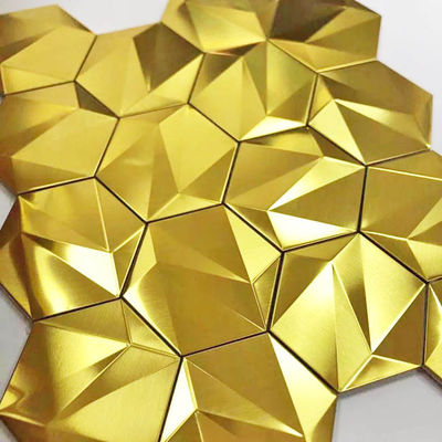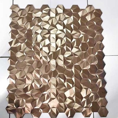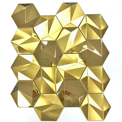 3D hình lục giác màu vàng hồng màu vàng khảm bằng thép không gỉ để trang trí tường