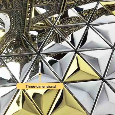 Ngói khảm 3D hình tam giác bằng bạc vàng bằng thép không gỉ để trang trí tường
