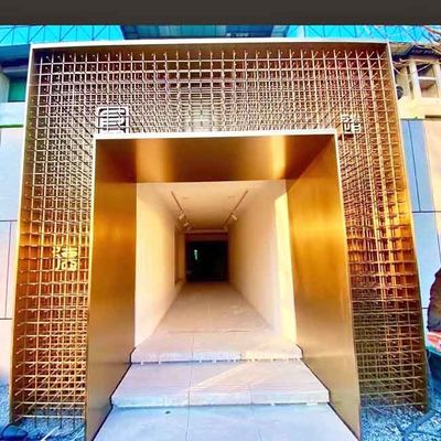 Lối vào tòa nhà Đồng thau Màu vàng Khung thép không gỉ của cửa