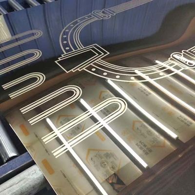 Các mẫu khắc được tạo ra bằng cách áp dụng một cách chọn lọc một lớp màng chống axit bảo vệ vào các khu vực được chỉ định và khắc axit ở các khu vực không được bảo vệ.Quá trình khắc sẽ loại bỏ một lớp thép không gỉ mỏng, đổi màu thành xám bạc xỉn và làm nhám bề mặt, có thể tương phản với mài, siêu gương hoặc các lớp hoàn thiện khác để tạo ra hàng nghìn biến thể.Hoàn thiện khắc cũng có thể được tô màu trước hoặc sau khi khắc.Nó được sử dụng rộng rãi cho các ứng dụng trang trí, chẳng hạn như cửa thang máy, tấm tường, đối phó và trang trí.