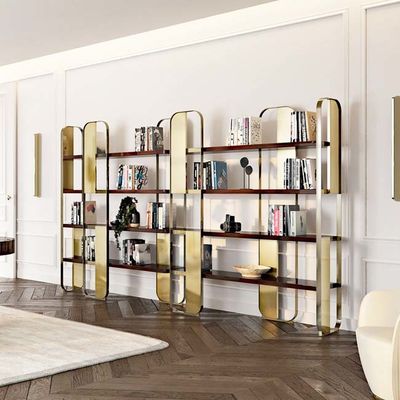 Tủ trưng bày bằng thép không gỉ màu vàng sâm panh tùy chỉnh |