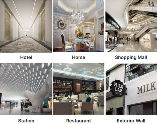 Được áp dụng rộng rãi cho kiến trúc & trang trí nội thất, chẳng hạn như trang trí thang máy, cửa sang trọng,trang trí tường, biển hiệu quảng cáo, đồ vệ sinh, trang trí trần nhà, hành lang, hội trường khách sạn, mặt tiền cửa hàng, vv