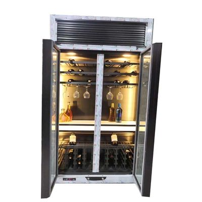 Thời trang hiện đại thép không gỉ rượu tủ đồ nội thất cửa kính trượt lưu trữ tủ rượu