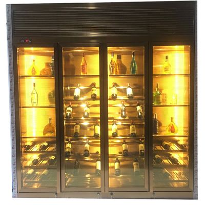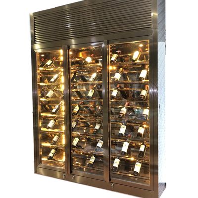 Thiết kế sang trọng cửa kính màu đen vàng nhiệt độ liên tục thép không gỉ phòng khách nội thất tủ rượu vang
