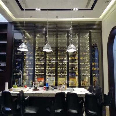 Khách sạn trang trí khung kim loại đen đồ nội thất kính hiển thị thép không gỉ Cabinet Wine Case