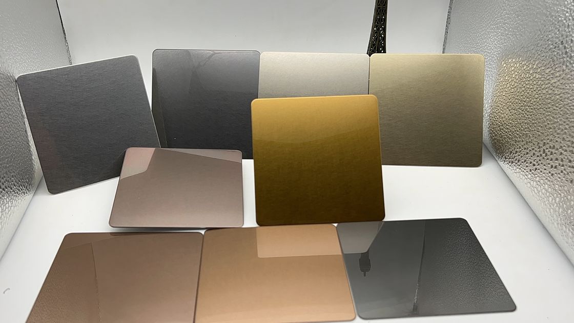 Bảng thép không gỉ màu PVD có sẵn trong một loạt các màu sắc.Các biến thể quá trình và hợp kim được sử dụng để có được nhiều màu sắc.