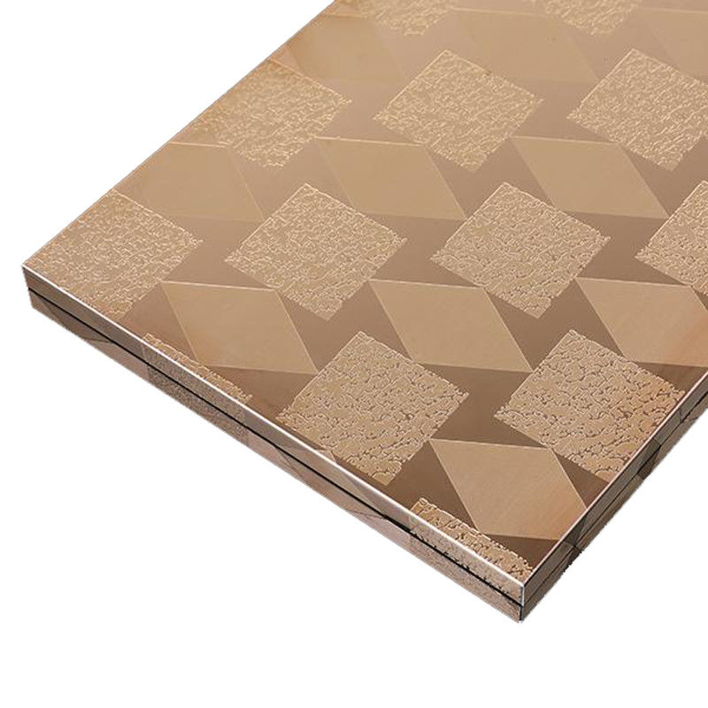 Các mẫu khắc được tạo ra bằng cách chọn lọc áp dụng một lớp phim chống axit bảo vệ vào các khu vực được chỉ định và khắc axit vào các khu vực không được bảo vệ.thay đổi màu sắc thành màu xám bạc mờ, và làm thô bề mặt, có thể tương phản với mài, siêu gương hoặc các kết thúc khác để tạo ra hàng ngàn biến thể.Nó được sử dụng rộng rãi cho các ứng dụng trang trí, chẳng hạn như cửa thang máy, tấm tường, đối phó và trang trí.
