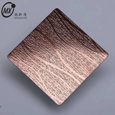 Các mẫu khắc được tạo ra bằng cách chọn lọc áp dụng một lớp phim chống axit bảo vệ vào các khu vực được chỉ định và khắc axit vào các khu vực không được bảo vệ.thay đổi màu sắc thành màu xám bạc mờ, và làm thô bề mặt, có thể tương phản với mài, siêu gương hoặc các kết thúc khác để tạo ra hàng ngàn biến thể.Nó được sử dụng rộng rãi cho các ứng dụng trang trí, chẳng hạn như cửa thang máy, tấm tường, đối phó và trang trí.
