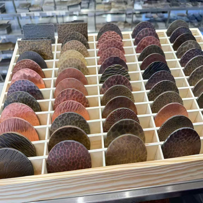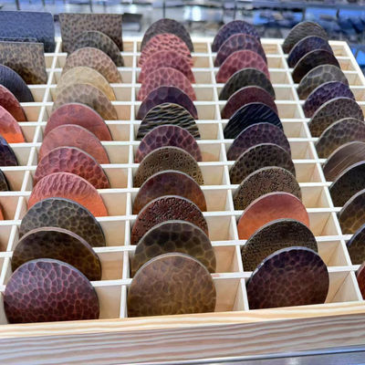 1.Làm bằng tay: Các thợ thủ công sử dụng búa làm việc với các mẫu để đánh bằng tay bề mặt của tấm thép không gỉ, tạo ra kết cấu không đồng đều.