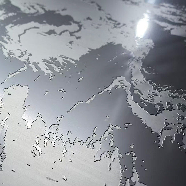 Các mẫu khắc được tạo ra bằng cách chọn lọc áp dụng một lớp phim chống axit bảo vệ vào các khu vực được chỉ định và khắc axit vào các khu vực không được bảo vệ.thay đổi màu sắc thành màu xám bạc mờ, và làm thô bề mặt, có thể tương phản với mài, siêu gương hoặc các kết thúc khác để tạo ra hàng ngàn biến thể.Nó được sử dụng rộng rãi cho các ứng dụng trang trí, chẳng hạn như cửa thang máy, tấm tường, đối phó và trang trí.