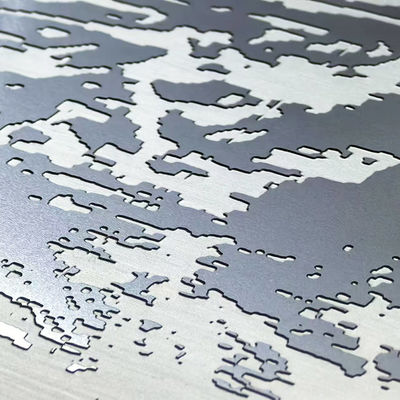 Các mẫu khắc được tạo ra bằng cách chọn lọc áp dụng một lớp phim chống axit bảo vệ vào các khu vực được chỉ định và khắc axit vào các khu vực không được bảo vệ.thay đổi màu sắc thành màu xám bạc mờ, và làm thô bề mặt, có thể tương phản với mài, siêu gương hoặc các kết thúc khác để tạo ra hàng ngàn biến thể.Nó được sử dụng rộng rãi cho các ứng dụng trang trí, chẳng hạn như cửa thang máy, tấm tường, đối phó và trang trí.