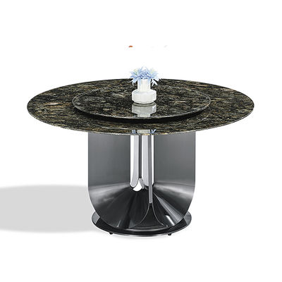 Bàn ăn mặt đá thiêu kết tròn hiện đại màu đen, bàn ăn bằng thép không gỉ với mâm xoay