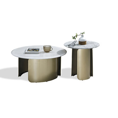 Bàn cà phê mặt đá nhân tạo OEM bằng thép không gỉ màu vàng champagne
