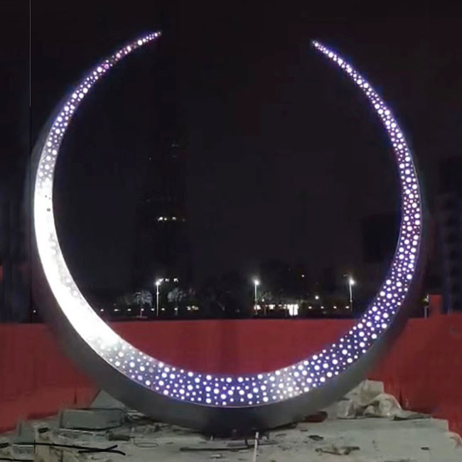 Luminous 12K Polished Mirror Silver 316L Stainless Steel Sculpture For Square